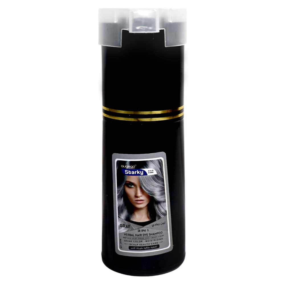 Starky herbal hair dye shampoo 3 in1 gray shine color,moisturizing,scalp health care ultra long lasting (g40) color gray-250ml