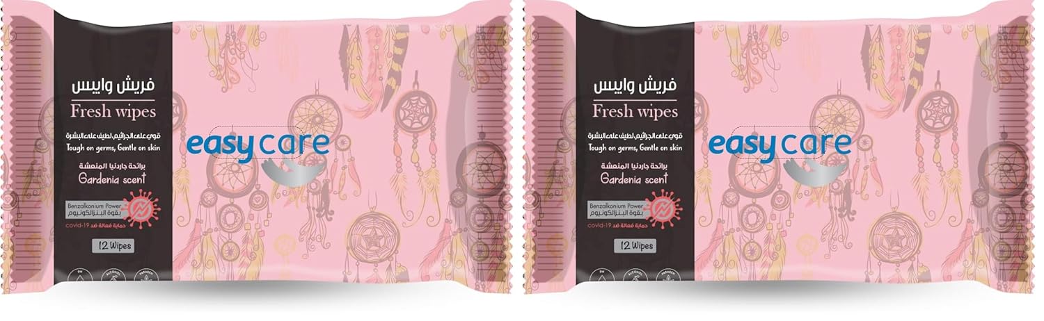 Easy Care Wet Wipes, Gardenia Scent, 12 Wipes (Pack of 2)