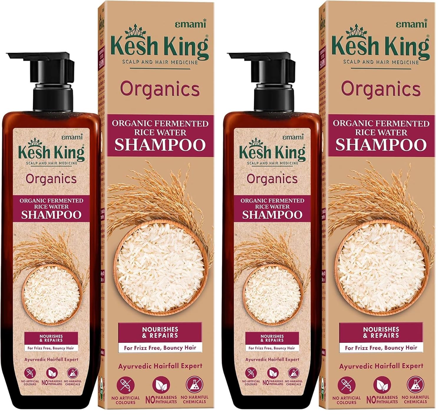 KESH KING Organics Fermented Rice Water Shampoo | Nourishes & Repairs | For Frizz-Free, Bouncy Hair | Certified Organic | No Artificial Colours, Parabens, Phthalates Or Harmful Chemicals, 300ml